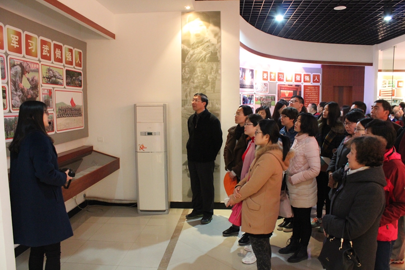 扬州宝应县柳堡镇是具有光荣革命传统的老区,留下了老一辈无产阶级革命家探寻真理、解放全中国的脚步,广大人民群众与新四军用鲜血结成了深厚的革命情谊,涌现出许多可歌可泣的英勇事迹,并以此英模故事为题材实景拍摄出一部家喻户晓的电影——《柳堡的故事》,其中一曲《九九艳阳天》则唱响大江南北,长城内外。以电影主人翁“二妹子”而取名的“二妹子”民兵班始建于20世纪50年代末,诞生在“九九艳阳天”的动人旋律中,成长于建设社会主义新农村的伟大实践,发展于改革开放、全面建成小康社会的重要历史时期。一行首先来到柳堡“二妹子”模范民兵班驻地活动中心,在院党委戴兆骏书记的带领下,老师们认真聆听着工作人员的讲解,在社会主义核心价值观的引领下,大家心领神会意识到,教育事业应秉持着不忘初心,继续前进的理念,将活动与党性教育相结合,爱国与敬业相联系,积极投身于教育工作与学院发展之中。